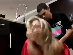 Hot stepmom together with stepson kitchen fuck front stepdad